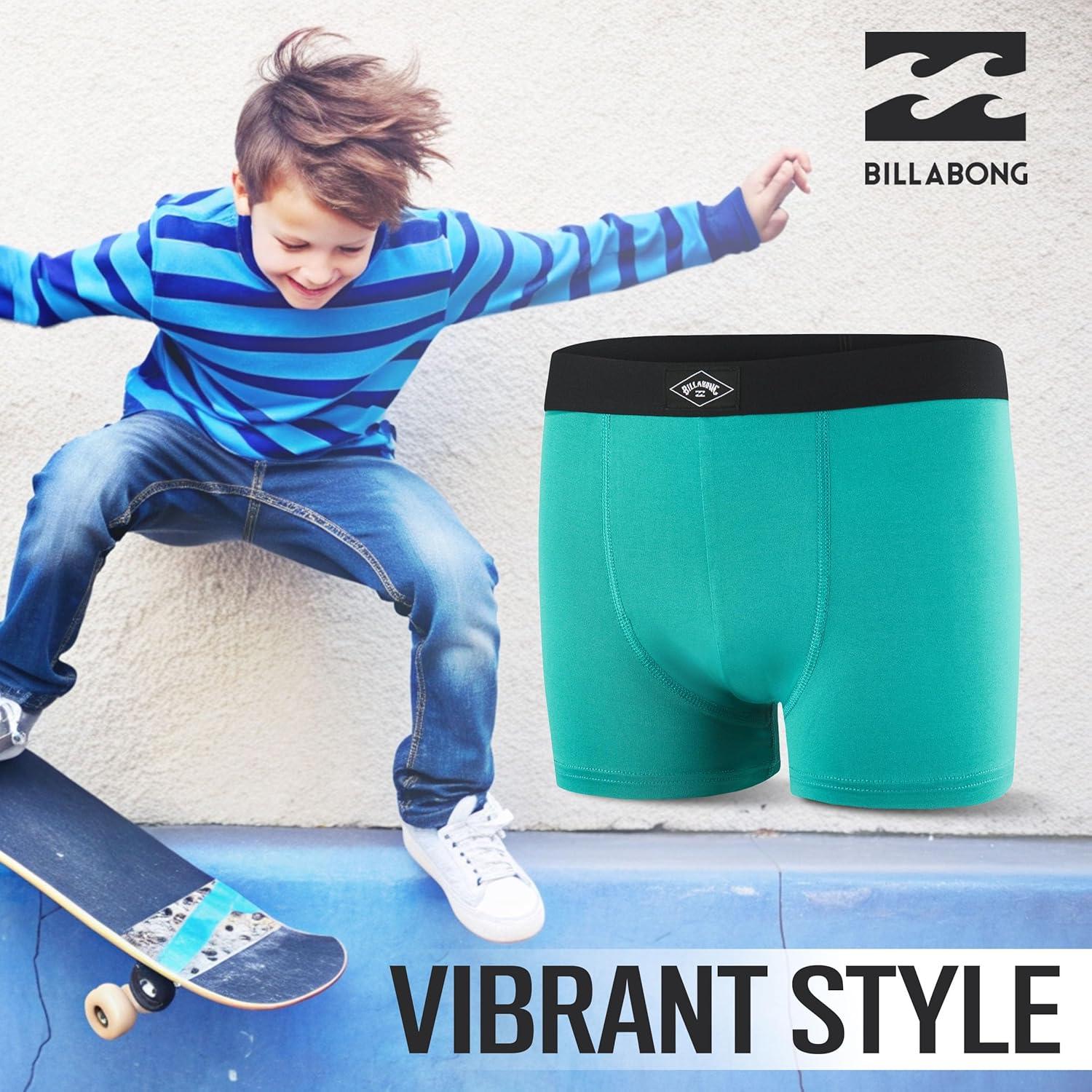 Billabong Boys Underwear 4 Pack Boxer Briefs for Boys 6-18 Durable Stretch Breathable Moisture Wicking(Aqua Blue blk)