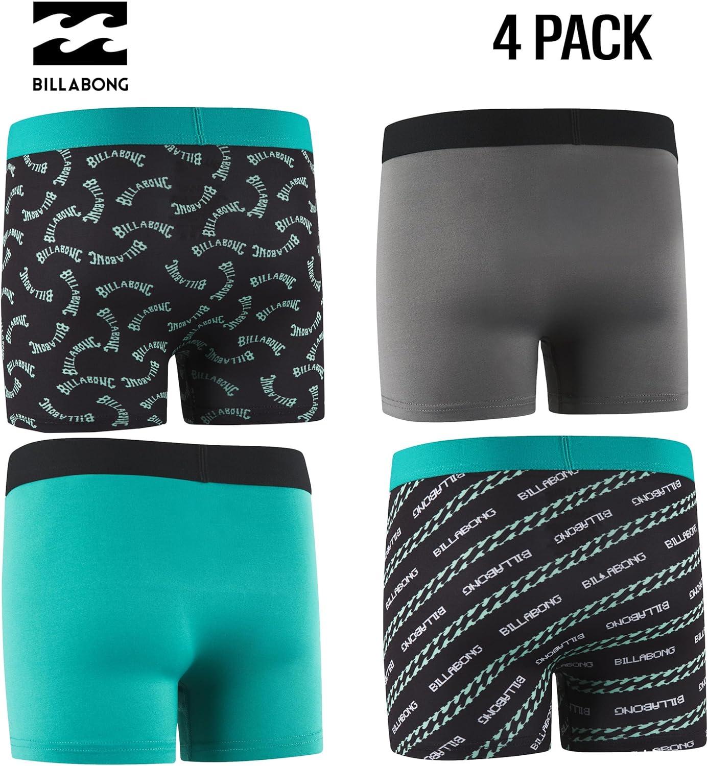 Billabong Boys Underwear 4 Pack Boxer Briefs for Boys 6-18 Durable Stretch Breathable Moisture Wicking(Aqua)