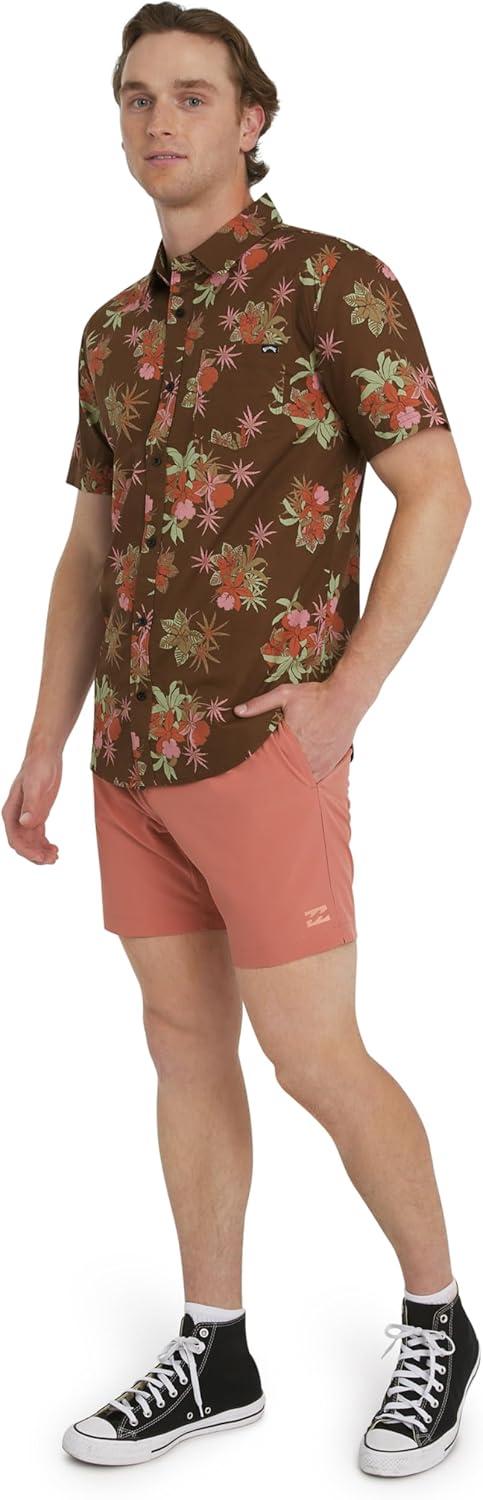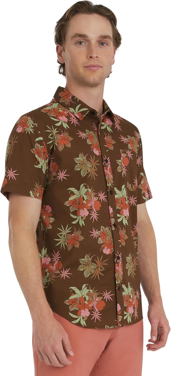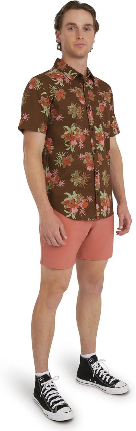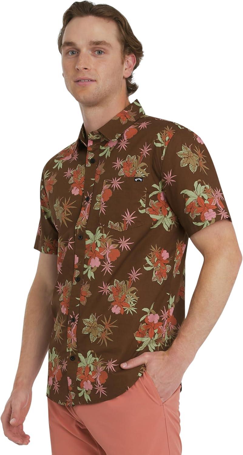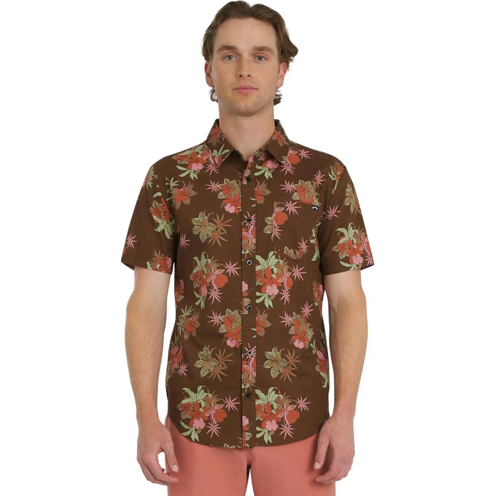 Billabong Men’s Printed Short Sleeve Woven Button Down Shirt(Brown)