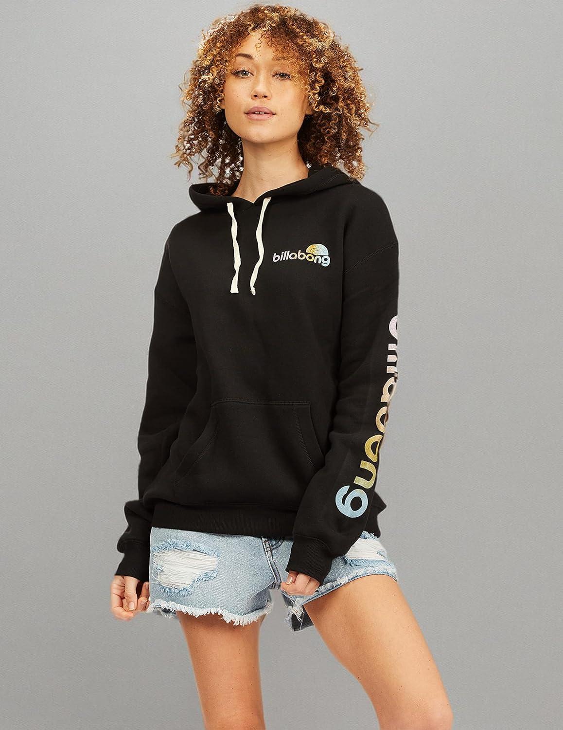 Billabong Women’s Graphic Pullover Sweatshirt Fleece Hoodie(Keep It Mellow Black)